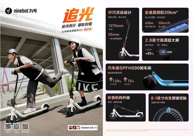 九號(hào)電動(dòng)滑板車:F2 系列高能亮相,E2 梔子白新色入列,C2 Pro童趣滿滿