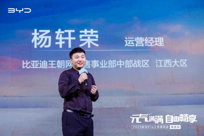 發(fā)布會(huì)開(kāi)篇,比亞迪汽車王朝網(wǎng)中部戰(zhàn)區(qū)江西大區(qū)的大區(qū)經(jīng)理柳萌先生為活動(dòng)進(jìn)行致辭,回顧了元Pro車型自誕生以來(lái)持續(xù)領(lǐng)跑A0級(jí)純電市場(chǎng),多次奪得A0級(jí)純電銷量冠軍。2023款元Pro作為王朝網(wǎng)唯一一款九萬(wàn)級(jí)純電車型,將重新樹(shù)立九萬(wàn)級(jí)純電市場(chǎng)的價(jià)值新標(biāo)桿,讓更多用戶感受到“好的生活,沒(méi)那么貴”。